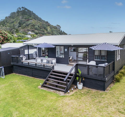 Why You'll Love It: • Flat, sunny site at the coveted south end • Sleepout and modern cabin offers flexible extra space • Deck views out to the Pinnacles - perfect for BBQs & sunset drinks • Moments to the beach, South End Reserve and Mt Pauanui • Recently updated with a new roof, paint and carpet. • Warm and cosy in winter with 2 heat pumps